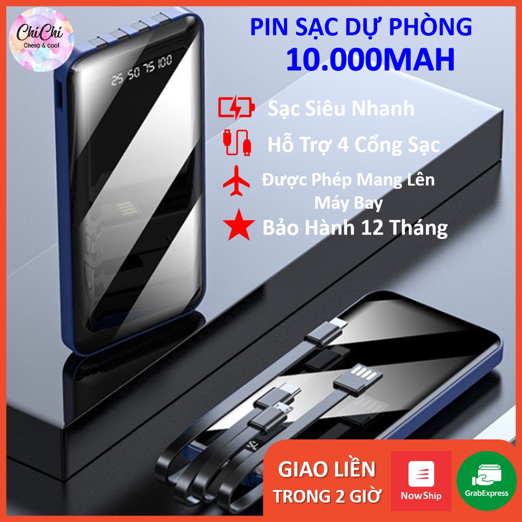 Sạc Dự Phòng 10000mAh kèm dây sạc nhanh siêu mỏng nhỏ gọn cao cấp giá rẻ ChiChi PDP01