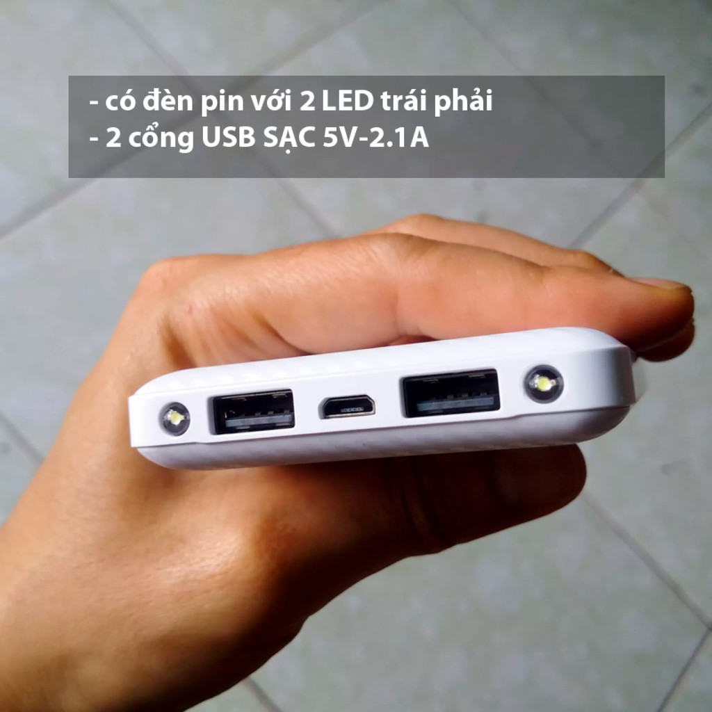 Mô tả sản phẩm Sạc Dự Phòng 10.000mAh Màn hình báo pin, có đèn pin, Chính hãng LET, 2usb 2.1APin sạc dự phòng hàng chuẩn sài ngon