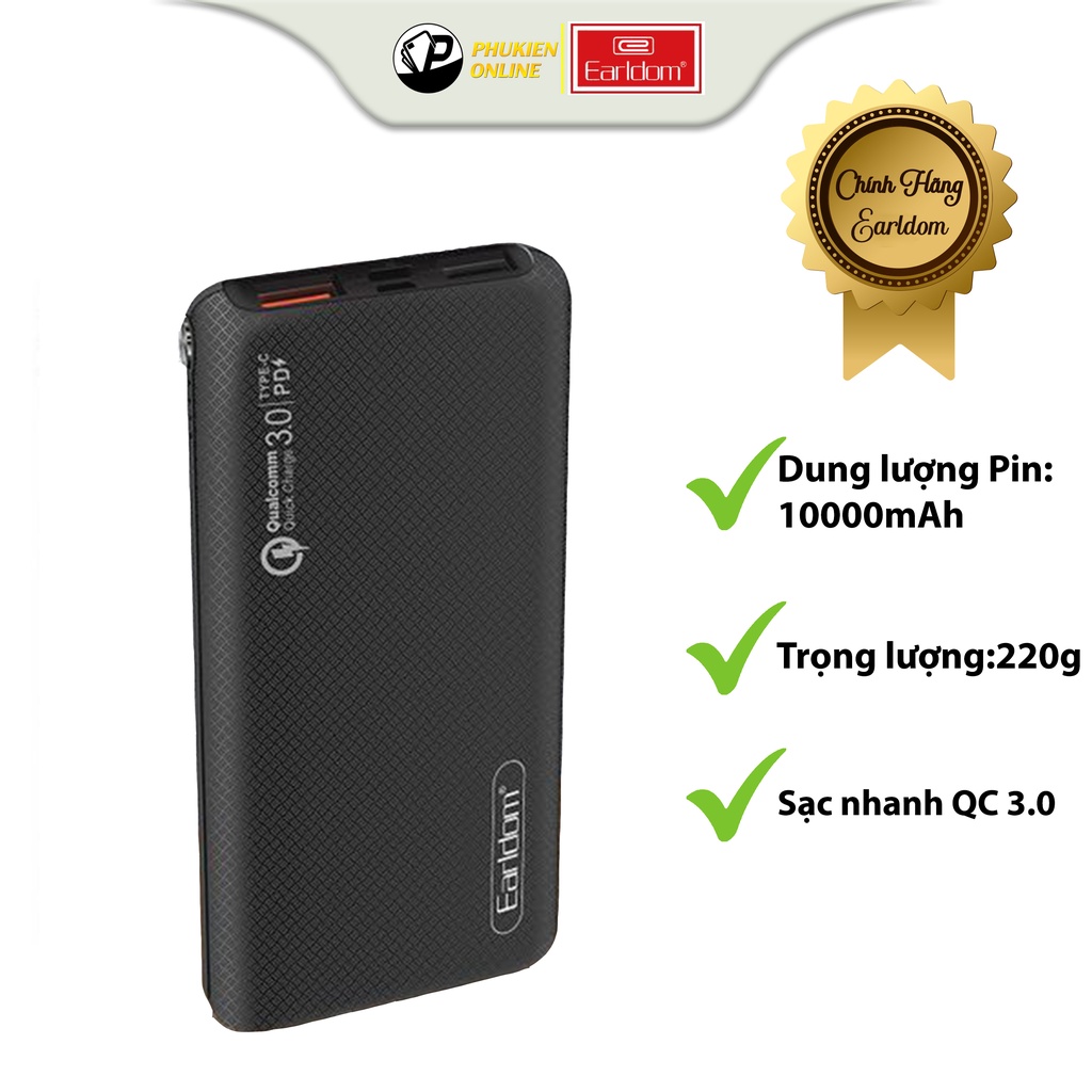 Điện Thoại & Phụ Kiện > Phụ kiện > Sạc dự phòng & Pin > Sạc dự phòng || Sạc Dự Phòng 10.000mAh Sạc Nhanh Q.C 3.0 Chính Hãng Earldom PD-26 Bảo Hành 1 Năm - chống rơi, vỡ và va đập mạnhCòn hàng
