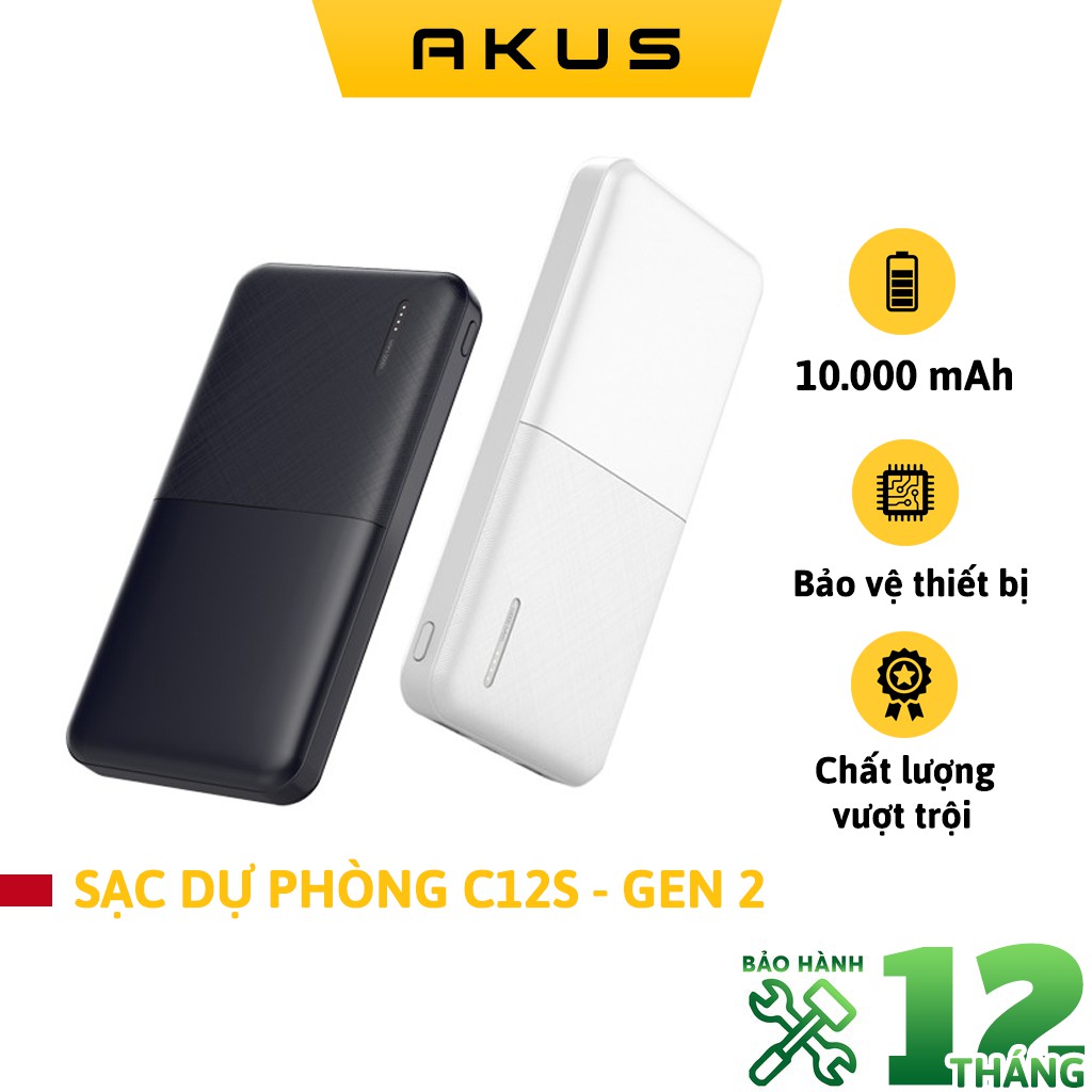 Sạc dự phòng 10000 mAh AKUS C12S GEN 2 - HÀNG CHÍNH HÃNG - Akus