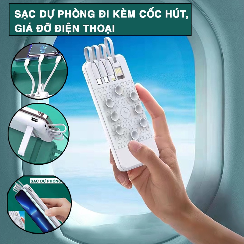 Sạc Dự Phòng 10000 mAh hỗ trợ cốc hút,giá đỡ sạc ở phía sau tiện lợi, an toàn khi sử dụng trên máy bay bảo hành 12 tháng
