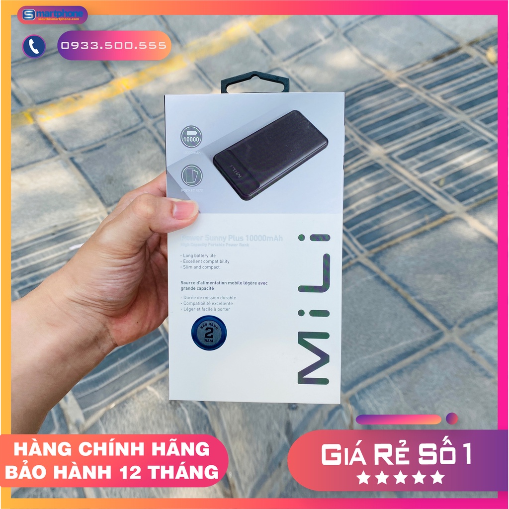 Sạc dự phòng 10000 mAh MiLi Power Sunny Plus 2 màu đen và trắng - Hàng Fullbox mới bảo hành 12 tháng lỗi 1 đổi 1