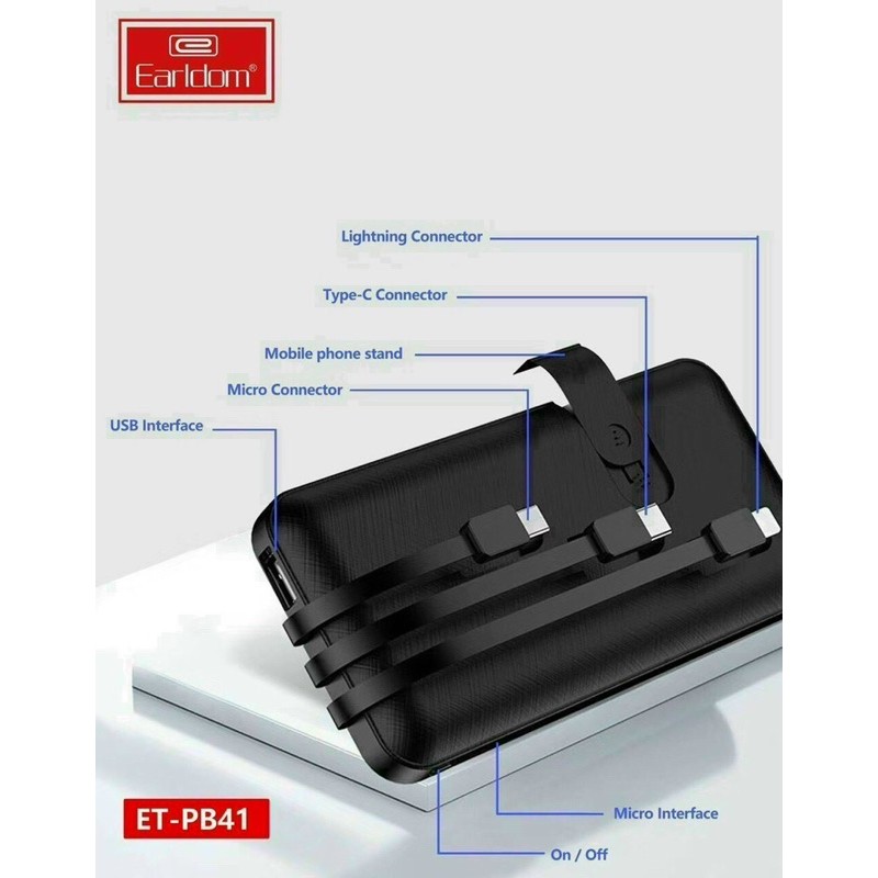 Sạc Dự phòng Gắn Cáp 3 Earldom PB-41 là sản phẩm được thiết kế đặc biệt, độc đáo mà bất cứ ai cũng không nên bỏ qua.