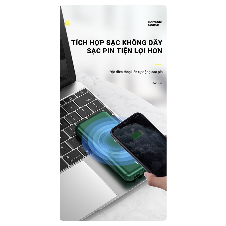 Sạc dự phòng 10000mAh 20000mAh YM-368 2.1A Sạc Nhanh Với cáp sạc Lightning Type C tích hợp sạc không dây
