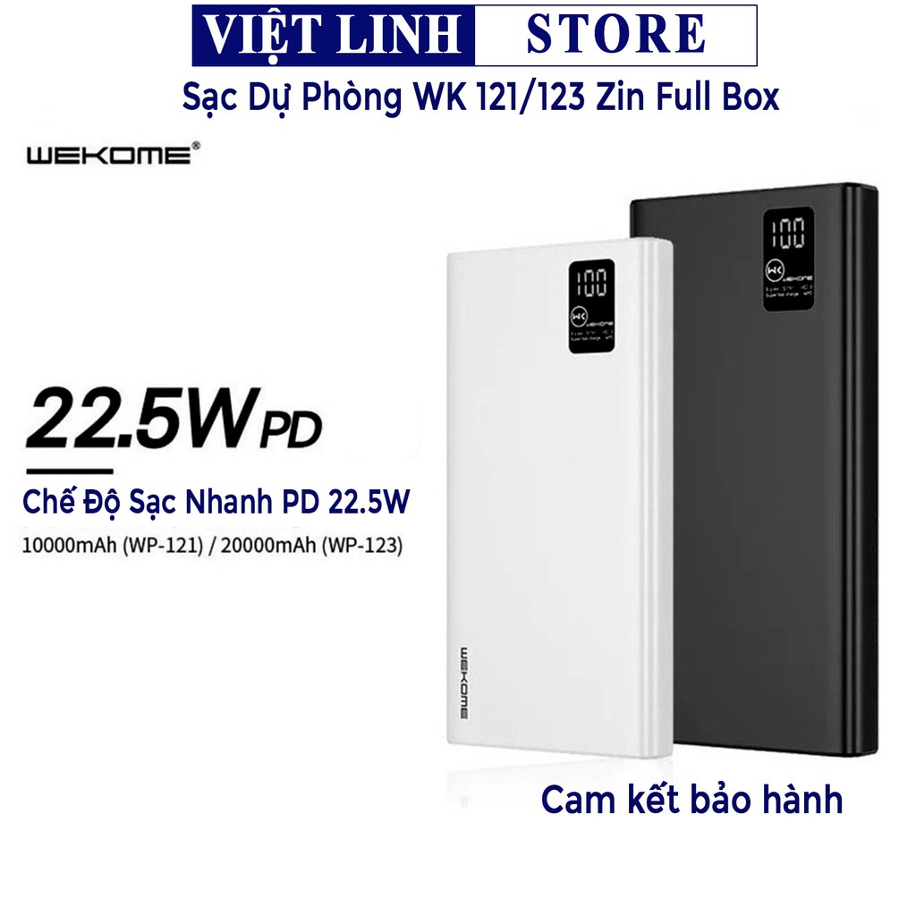 Giới thiệu Sạc Dự Phòng 10000mah, 20000mah WK 121/123, sạc nhanh PD 5A 22.5W - Việt Linh Strore