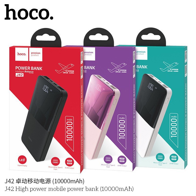 Giới thiệu Sạc Dự Phòng 10000mah/20000mah/30000mah 2 Cổng Sạc In/Out Hoco J42 High power - Bảo Hành 12 Tháng