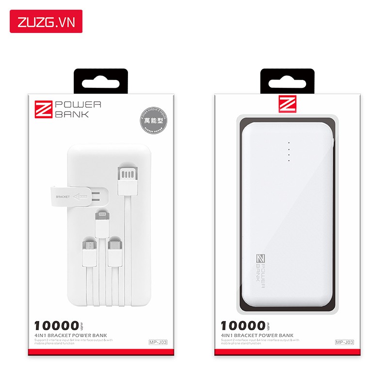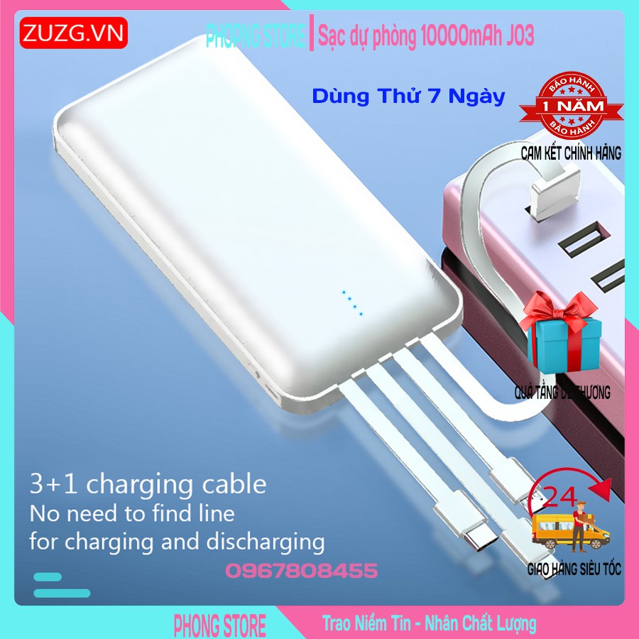 THÔNG TIN SẢN PHẨM PIN SẠC DỰ PHÒNG 10000MAHSạc dự phòng 10000mAh 4IN1 J03 chính hãng zuzg
