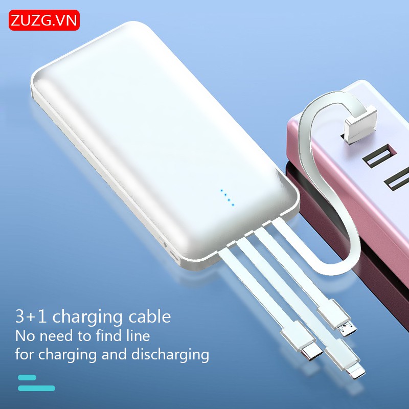 + Sở hữu dung lượng 10000mAh giúp bạn nạp đầy năng lượng cho thiết bị từ 2-3 lần. Để nạp đầy năng lượng cho sạc dự phòng 4IN1 ZUZG J03 10000mAh bạn chỉ mất khoảng 5 giờ.
