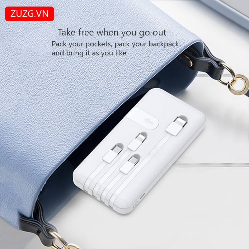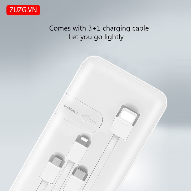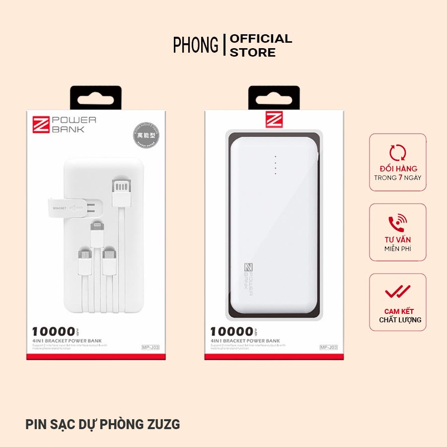 Sạc dự phòng 10000mAh 4IN1 ZUZG J03 / Pin dự phòng có 3 đầu dây sạc Lightning, Type C, Andiroi, BH 12 Tháng- PHONG STORE