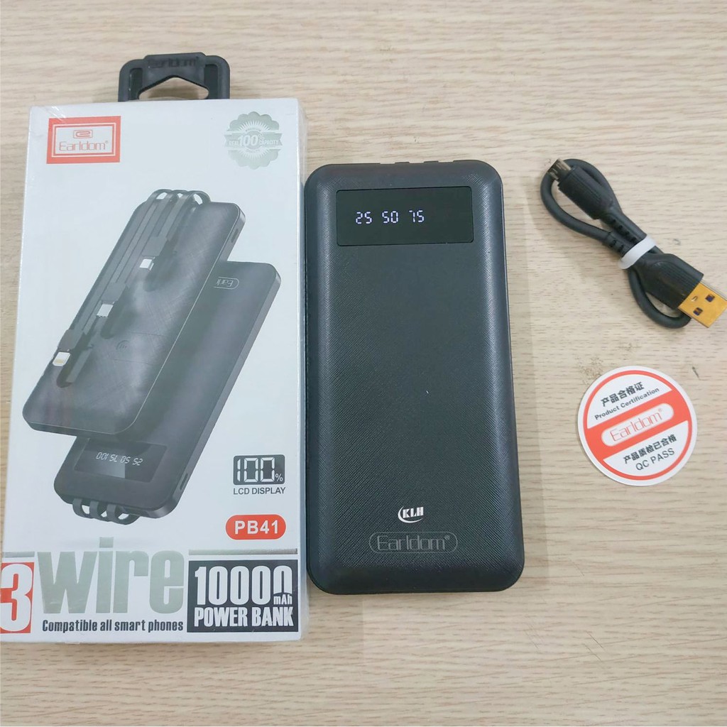 Điện Thoại & Phụ Kiện > Phụ kiện > Sạc dự phòng & Pin > Sạc dự phòng || Sạc dự phòng 10000mAh Earldom PB41, pin tích điện dung lượng cao kèm 3 đầu cáp KLH shopCòn hàng