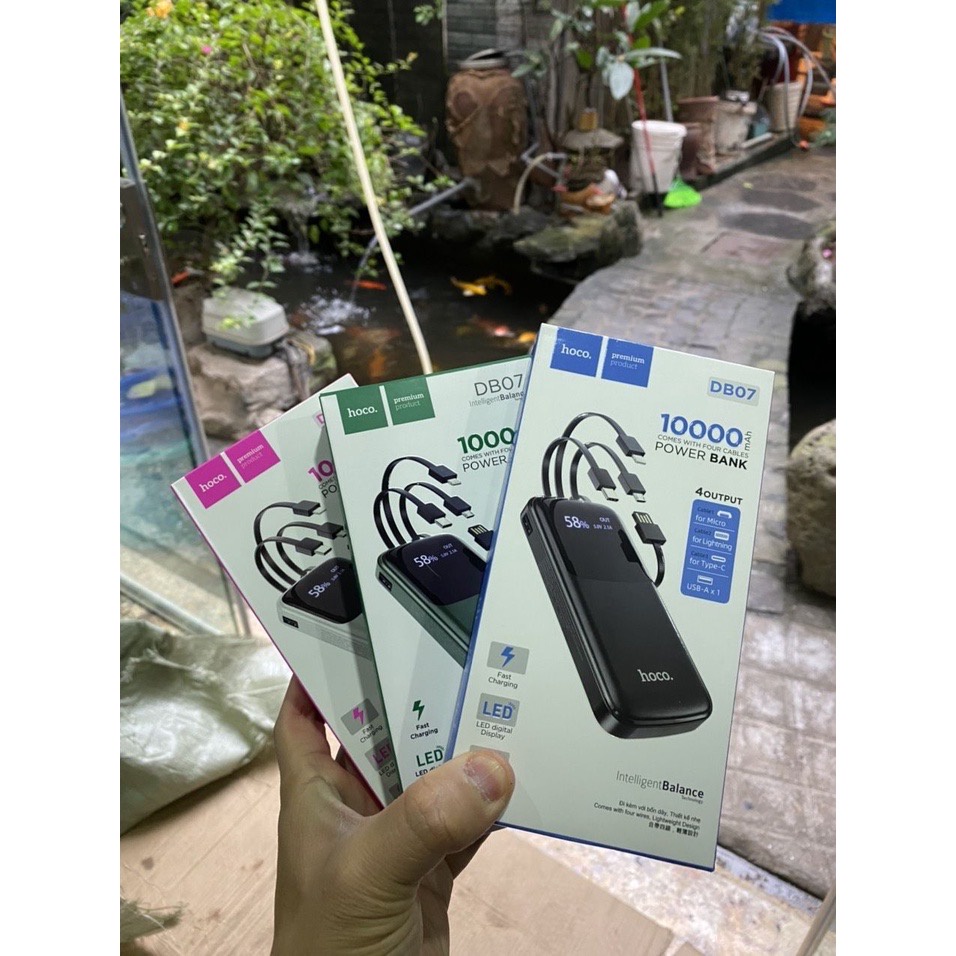 Sạc Dự Phòng 10000mah HoCo DB07.Tích Hợp 3 Cáp Sạc Micro/Lightning/Type-C ,Màn Hình LED (Bảo Hành 12 Tháng)