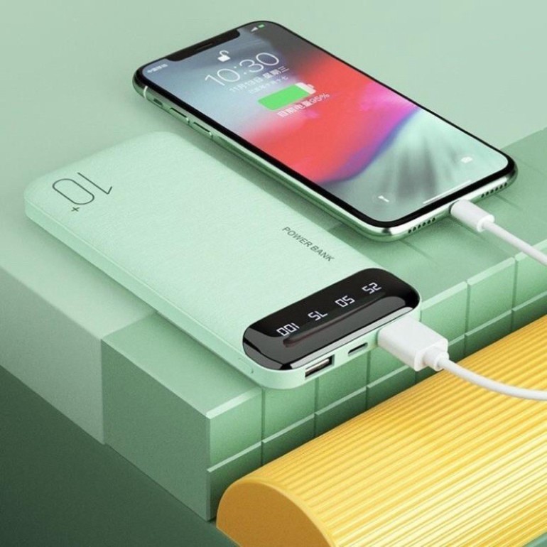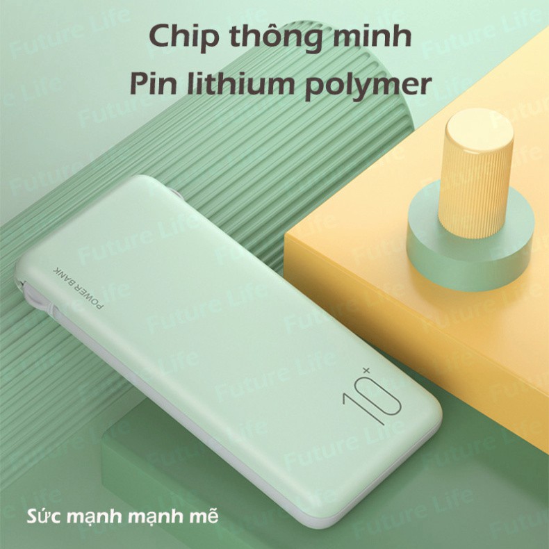 Sạc Dự Phòng 10000mAh Kết Cấu Vỏ Nhám Màu Macaron Hỗ Trợ Sạc 3 Thiết Bị Cùng LúcĐặc điểm sản phẩm: