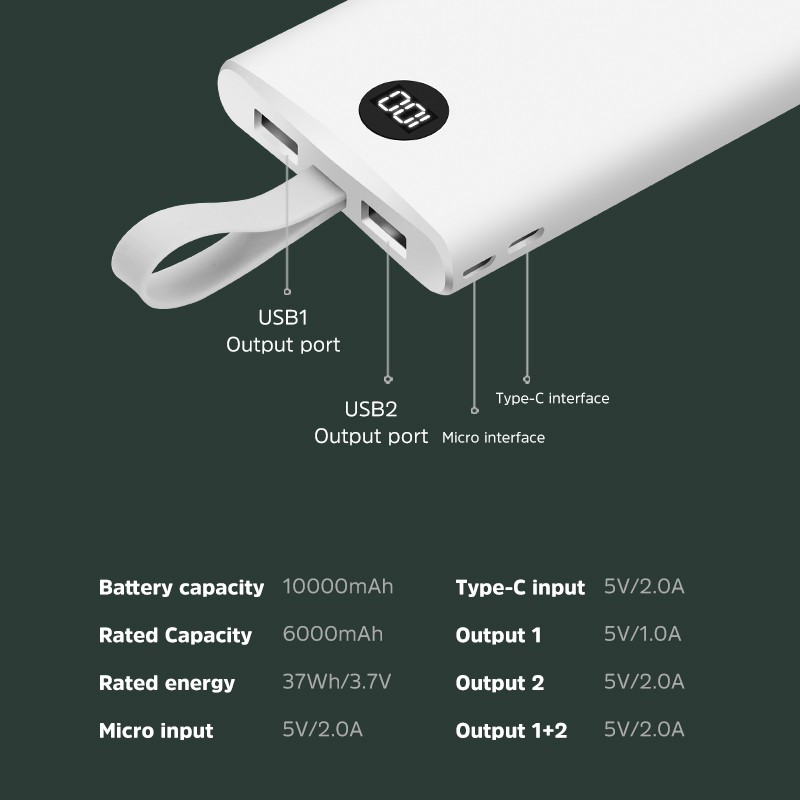 Công suất: công suất thực: 10000mAh 37Wh / 3.7V