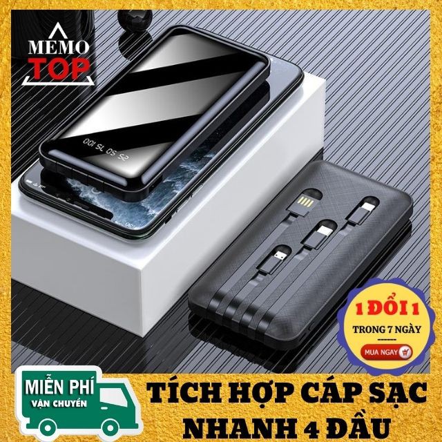 Điện Thoại & Phụ Kiện > Pin sạc dự phòng > 5000 - 10000mAh || Sạc dự phòng 10000mah Power Bank 4 dây sạc cho Iphone, samsung, xiaomi có Lightning,Type C,Micro, USB - MemotopCòn hàng