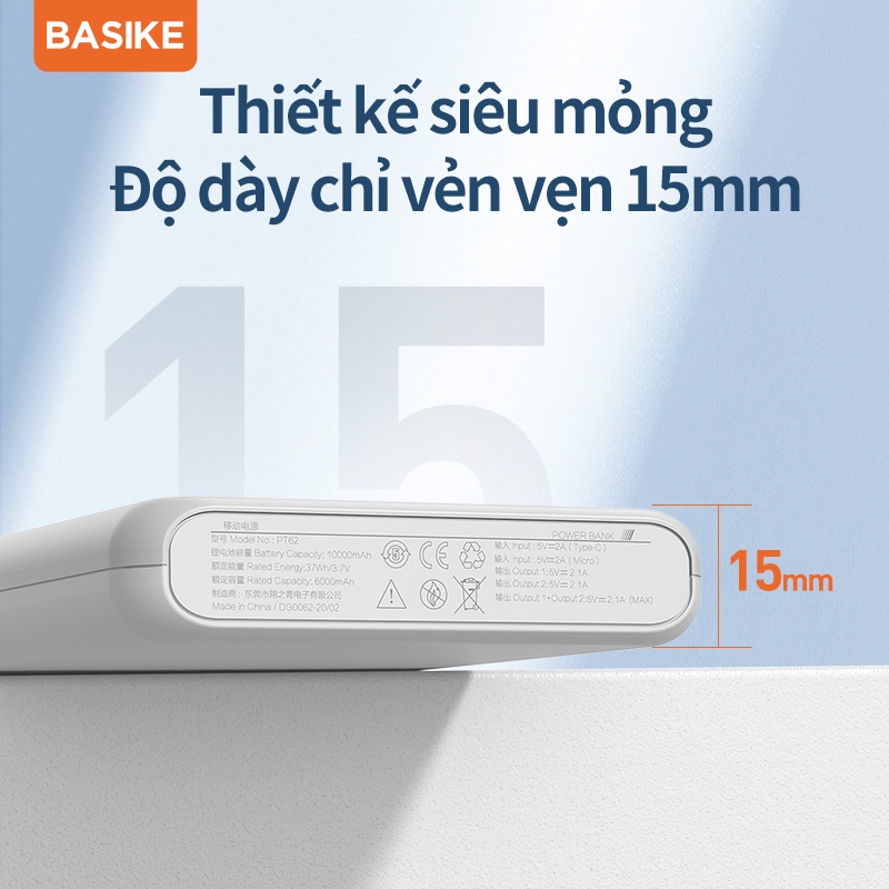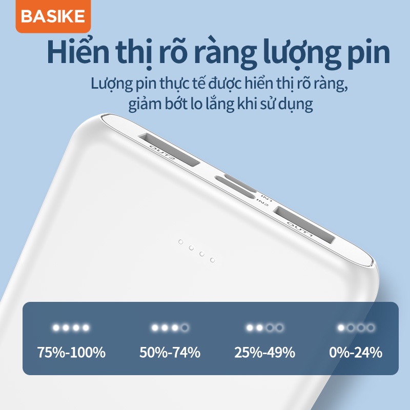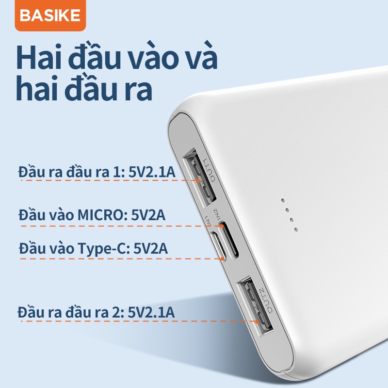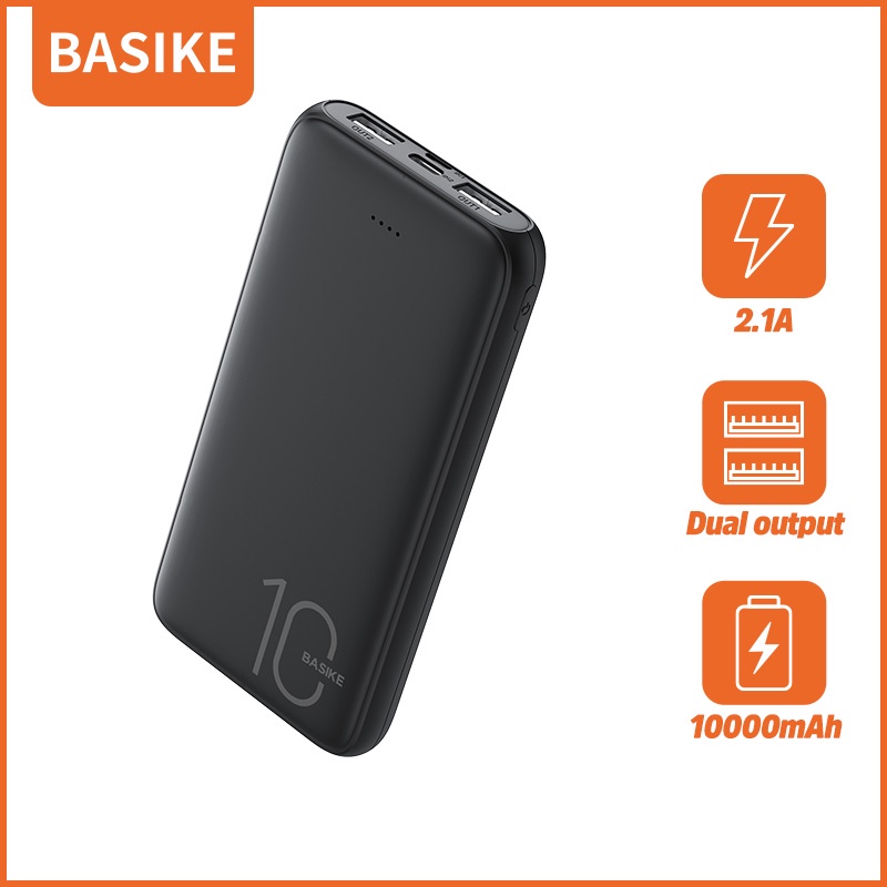 Sạc dự phòng di động BASIKE 10000mAh 2 cổng USB sạc nhanh giá rẻ, phù hợp với mọi dòng điện thoại iPhone Android