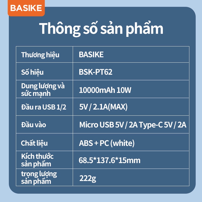 Thương hiệu: BASIKE | Xem thêm các sản phẩm Pin sạc dự phòng di động của BASIKEMô tả ngắn