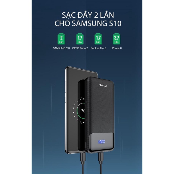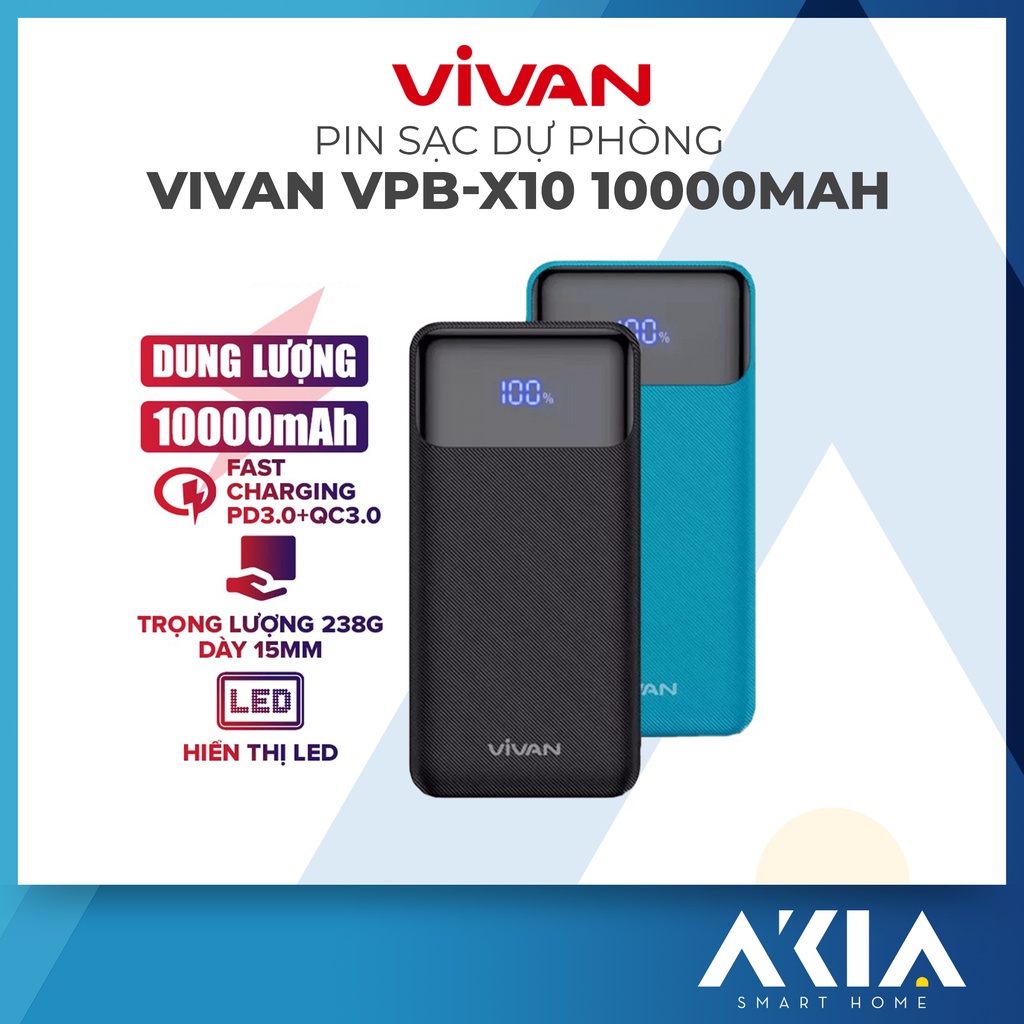 Sạc dự phòng 10000mAh sạc nhanh pd/qc 3.0 vivan vpb-x10 20w - 2output type c & usb AKIA Smart HomeI.Ưu điểm VIVAN VPB-X10:
