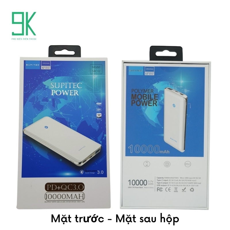 Sạc dự phòng 10000mAh SUPITEC Model SRC-02 mặt trơn,bảo hành 12 tháng