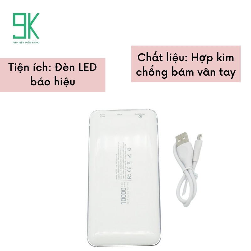 - Sạc dự phòng có dung lượng pin 10.000 mAh, có thể sạc được nhiều lần cho các thiết bị di động phổ biến trên thị trường hiện nay.