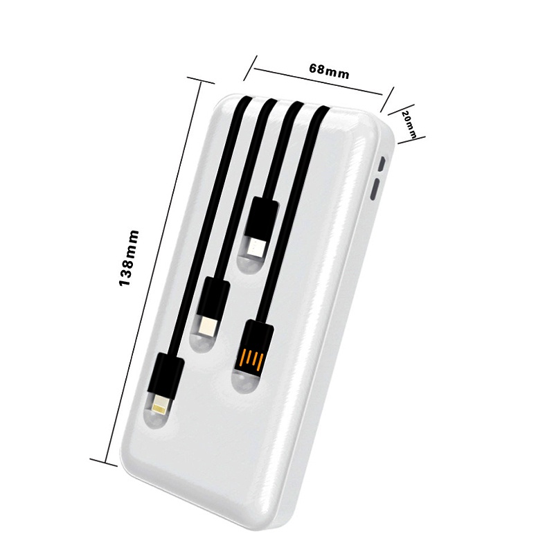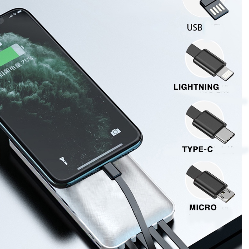 SẠC DỰ PHÒNG 10000mAh-T22 CÁT THÁI tích hợp sẵn 4 cáp sạc Type-c, Lightning,Micro, USB- hỗ trợ sac nhanh