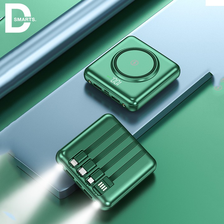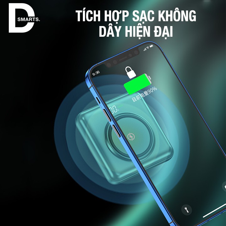 Sạc Dự Phòng 10000mAh Tích Hợp Sạc Không Giây Và 4 Cổng Sạc ( usb, type-c, micro, iphone )✅NHỎ GỌN: Kích thước nhỏ và dung lượng lớn: Pin sạc dự phòng 10000mAh có thể sạc cho iPhone 8 3.5 lần, iPhone XS 2.7 lần, Xiaomi Mi 9 2.2 lần.