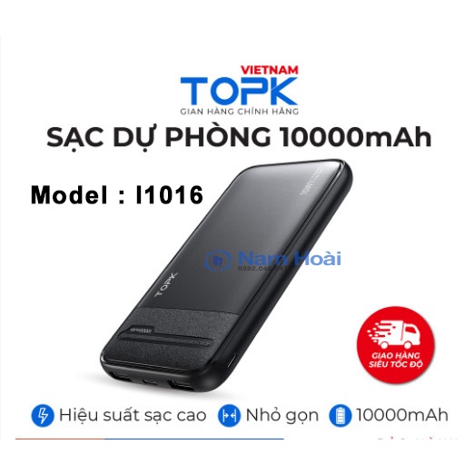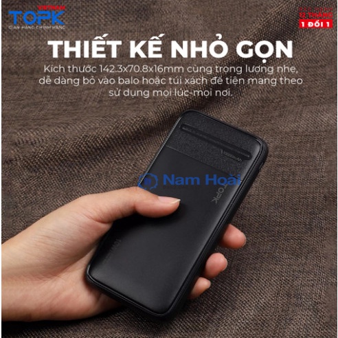 - Bộ sản phẩm bao gồm: 1 sạc dự phòng TOPK I1016, 1 cáp sạc