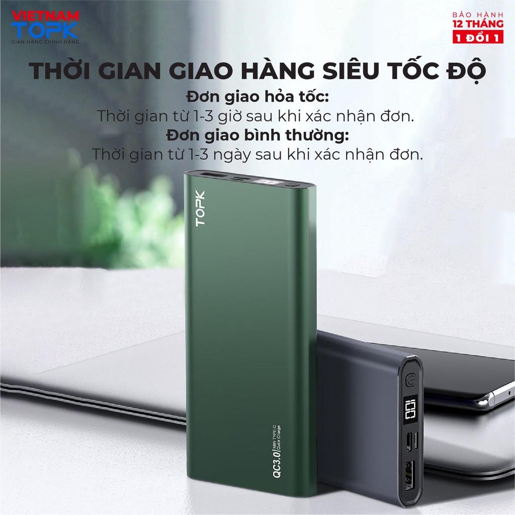 Sạc dự phòng 10000mAh TOPK I1006 - Đầu ra USB sạc ổn định - Màn hình LEDTHỜI GIAN GIAO HÀNG SIÊU TỐC ĐỘ