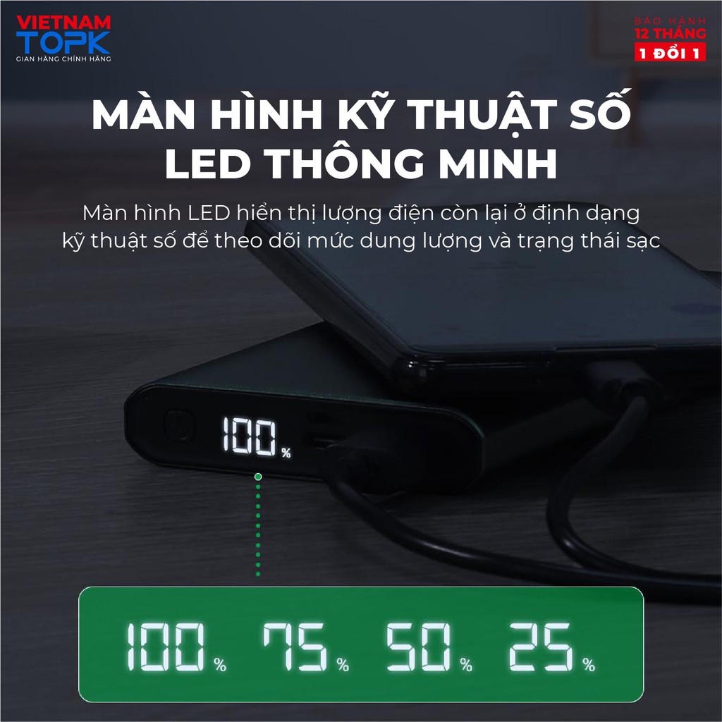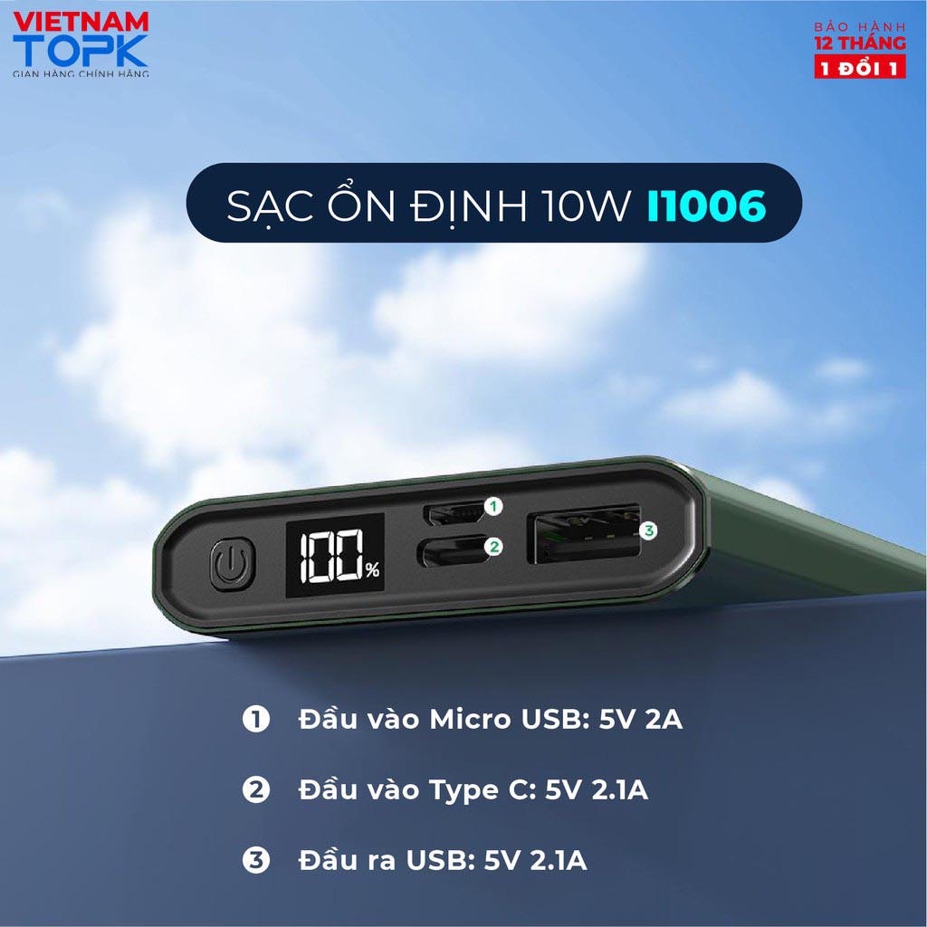 Sạc dự phòng 10000mAh TOPK I1006 - Đầu ra USB sạc ổn định - Màn hình LED