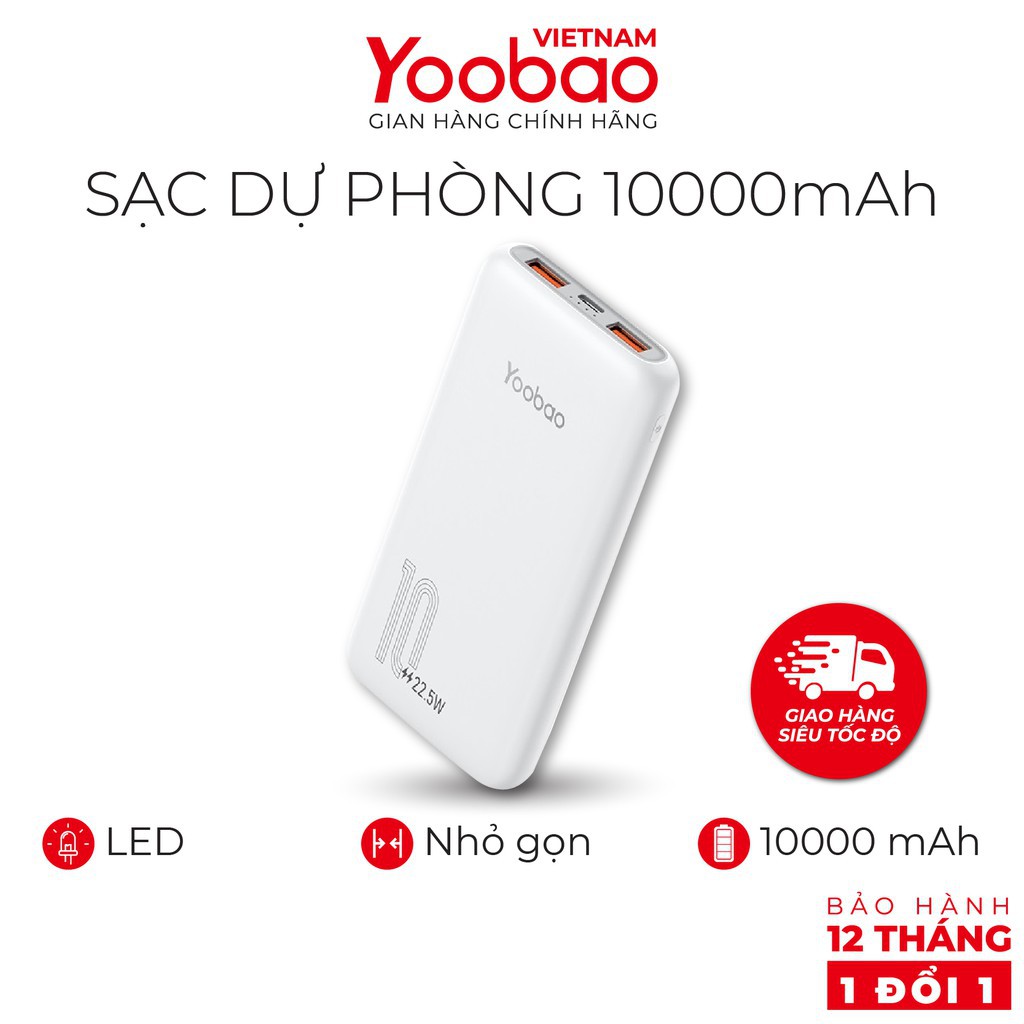 Sạc dự phòng 10000mAh Yoobao D10Q 2 cổng USB - Hỗ trợ sạc nhanh - Hàng chính hãng - Bảo hành 6 tháng 1 đổi 1