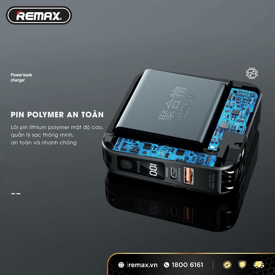 ✪ Củ sạc kiêm pin sạc dự phòng Remax 15.000mAh đã được chứng nhận đủ tiêu chuẩn 3C an toàn cho con người và thiết bị điện tử.