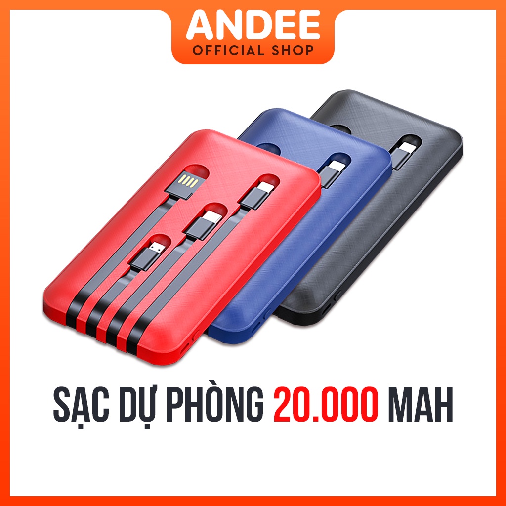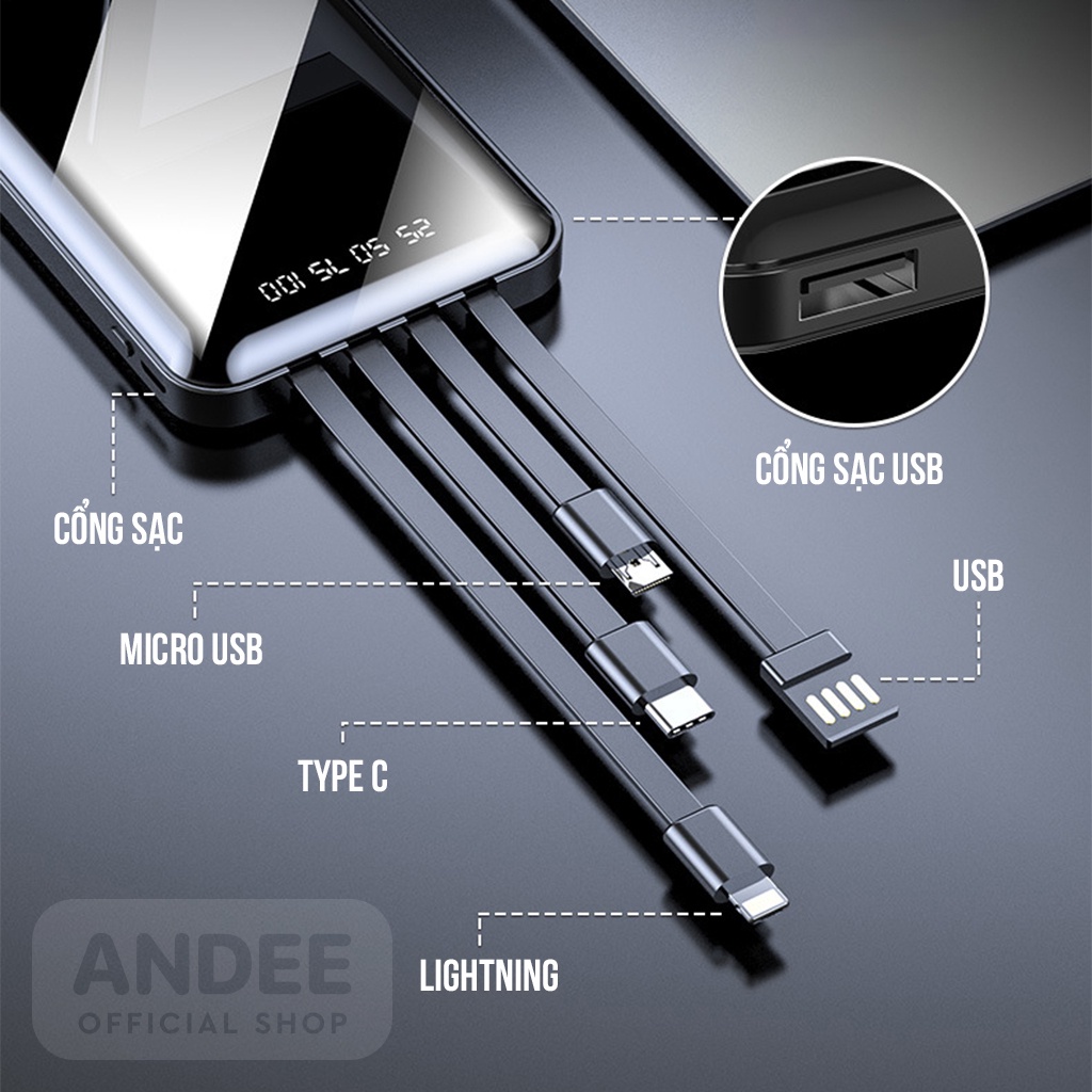 - Thiết kế tiện lợi không cần mang theo dây cáp nào, sạc dự phòng được tích hợp sẵn 3 dây cáp output với cổng Lightning dành cho iPhone, cổng Type-C, Micro USB dành cho thiết bị Android và nhiều thiết bị khác. Giờ đây bạn có thể sạc tất cả các loại thiết bị mà không cần mang theo dù chỉ một sợi dây cáp. Kiểu dáng nhỏ nhắn, gọn nhẹ sạc dự phòng đa năng có kích thước thước chỉ 140 x 68 x 20 mm, cùng với dung lượng 20000 mAh siêu trâu.