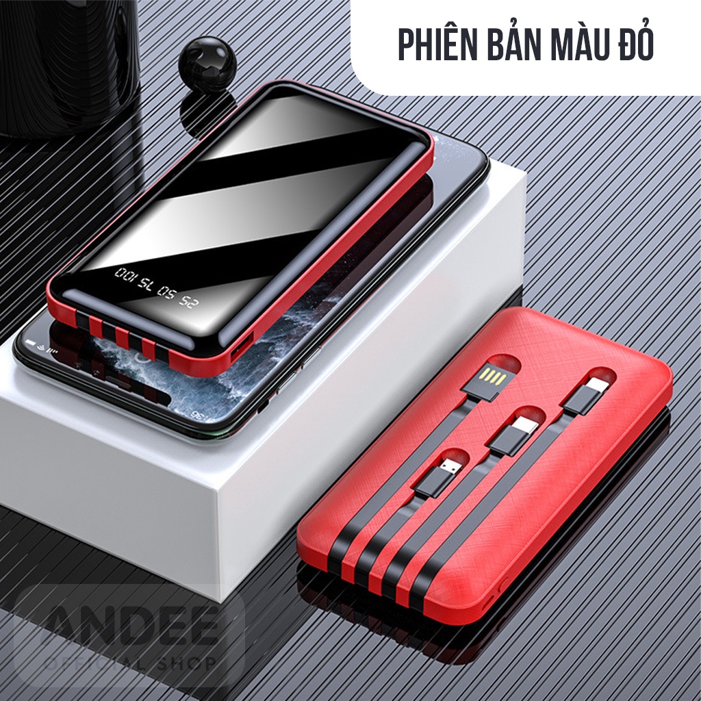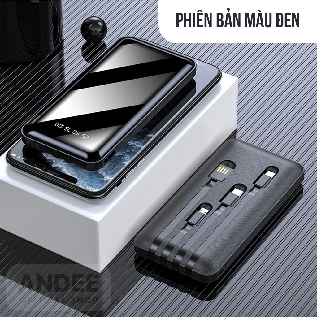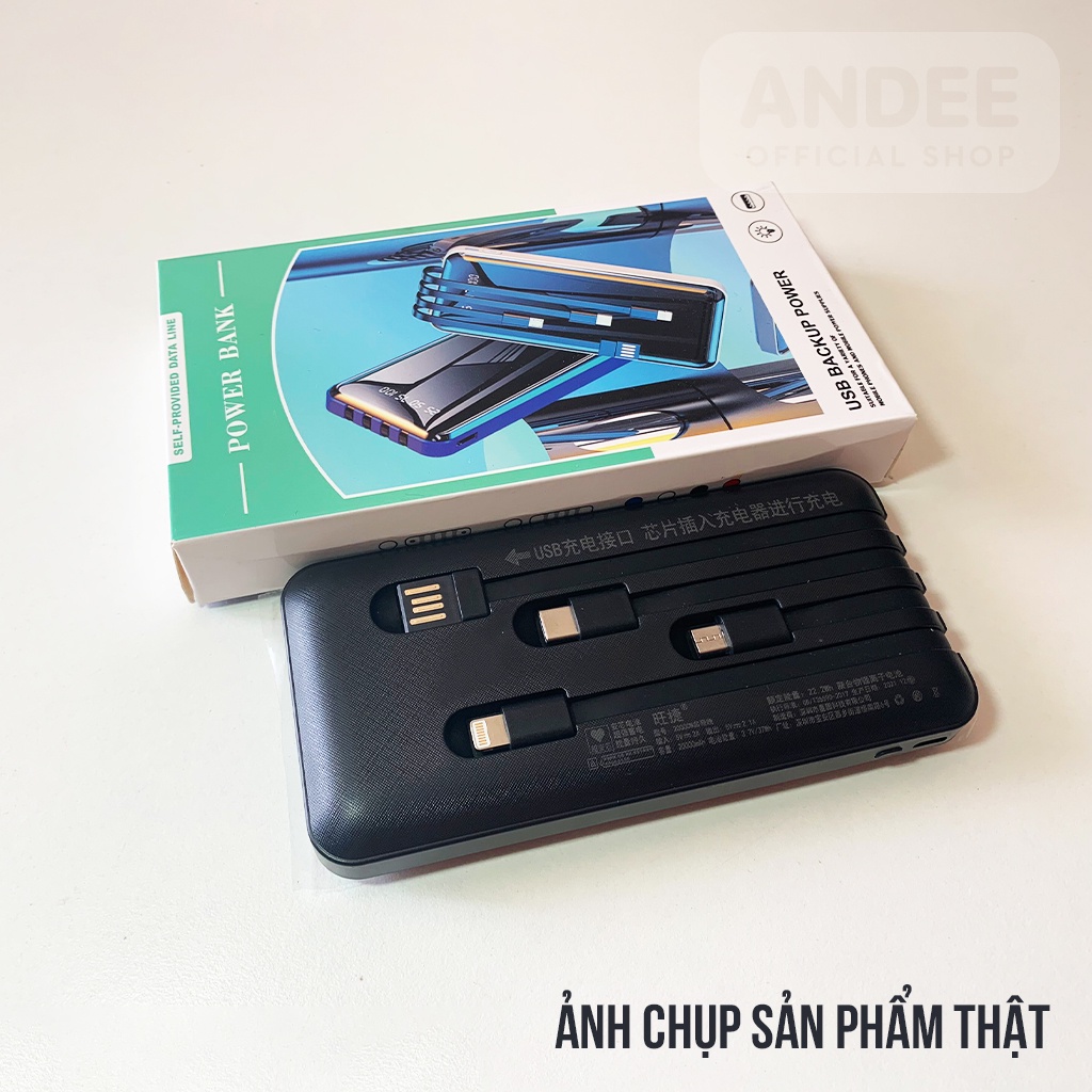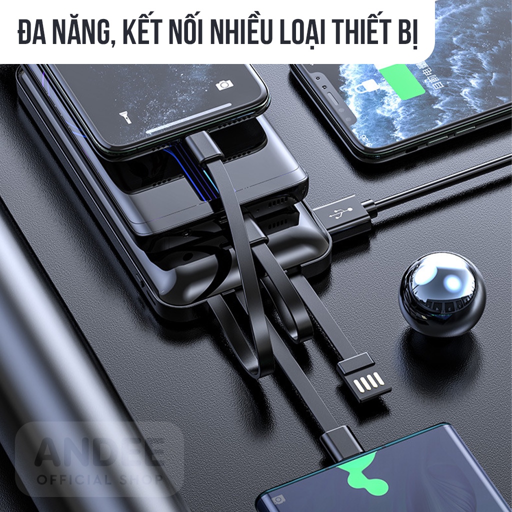 - Được sản xuất từ pin lithium polymer mật độ cao với công nghệ pin cập nhật mới nhất, làm giảm trọng lượng xuống chỉ còn 220g, nhẹ và nhỏ giúp bạn dễ dàng mang theo cùng smartphone của mình. Ba dây cáp cho bạn sạc tất cả các loại thiết bị cáp Lightning dành riêng cho các thiết bị iPhone, iPad, iPod... cáp Type-C, Micro USB có thể sạc các thiết bị Android đời mới nhất như Samsung, Oppo, Nokia, Huawei, Xiaomi...và nhiều loại thiết bị thông dụng khác.