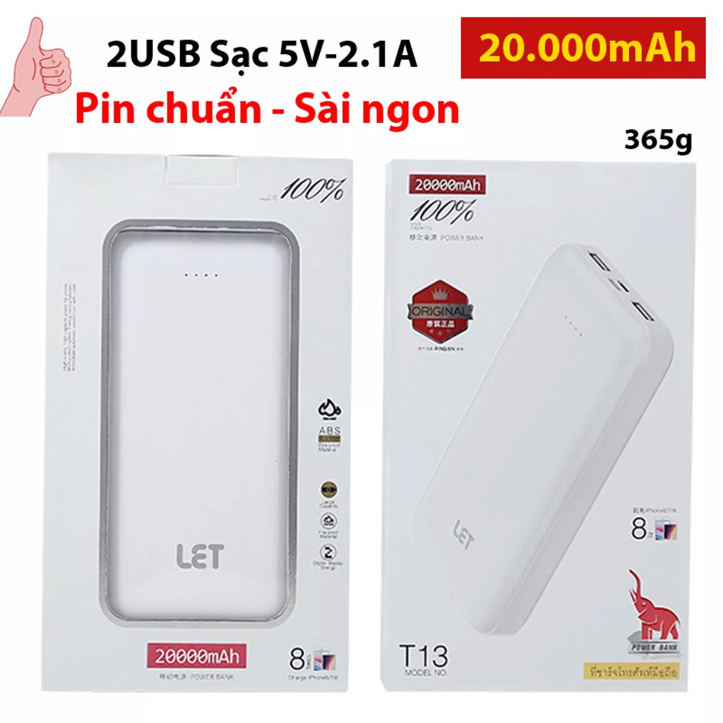 Sạc Dự Phòng 20.000mAh, Hàng chuẩn 2.1A - Chính hãng LET