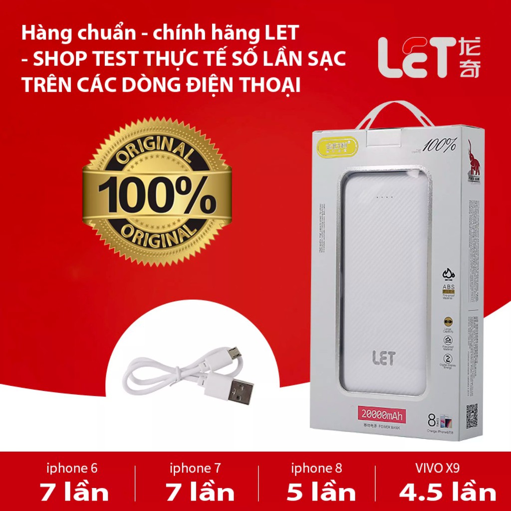 Chính hãng LET, Dung lượng 20.000mAh chuẩn