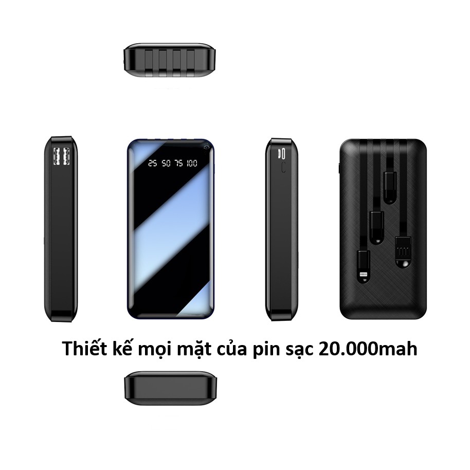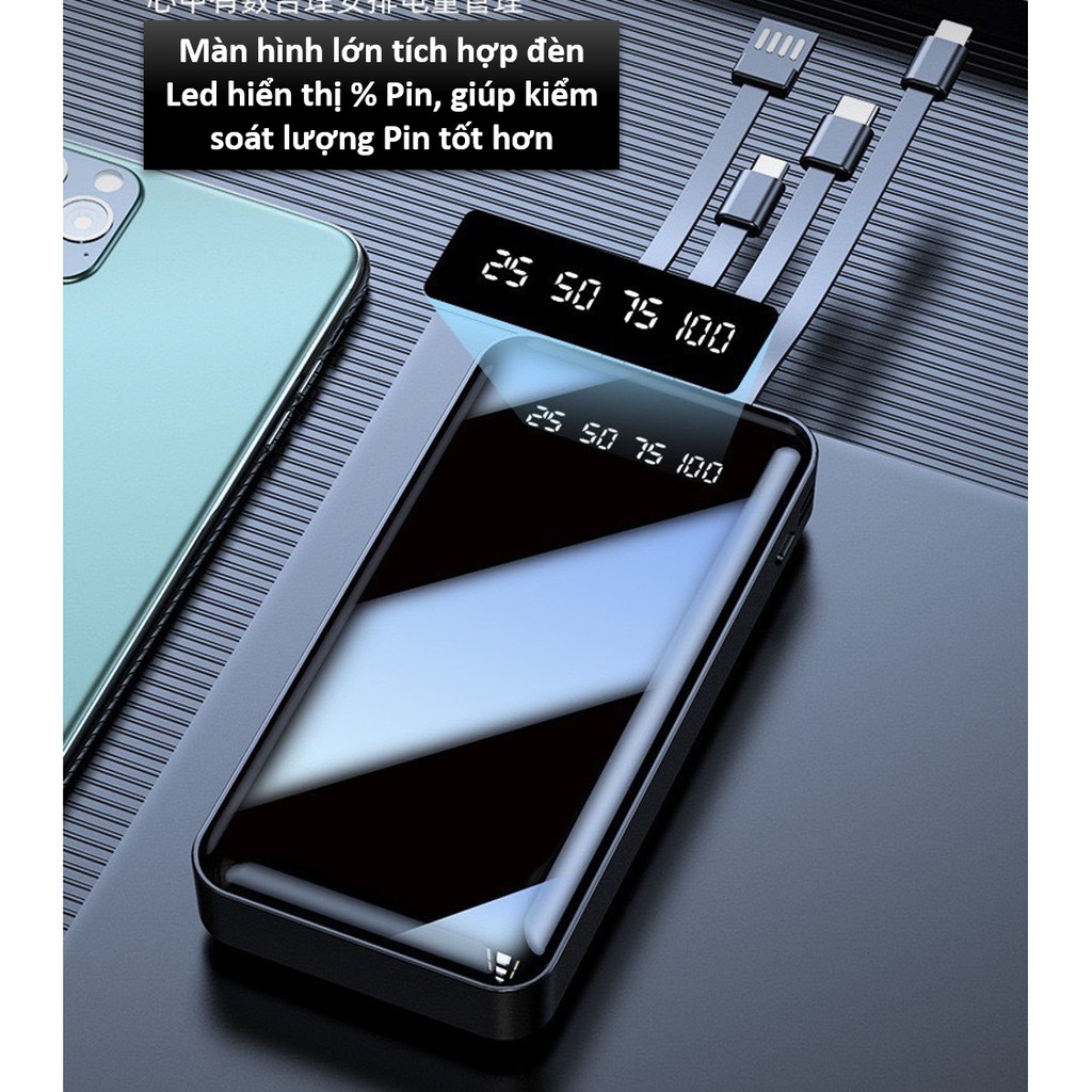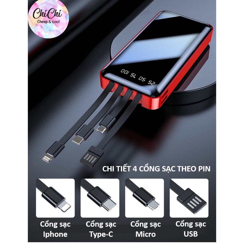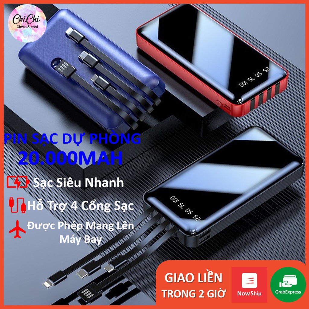 Sạc Dự Phòng 20000mAh cao cấp kèm dây nhỏ gọn giá rẻ sạc nhanh ChiChi PDP02