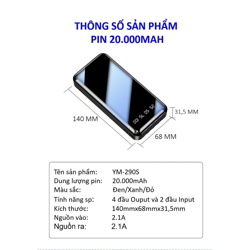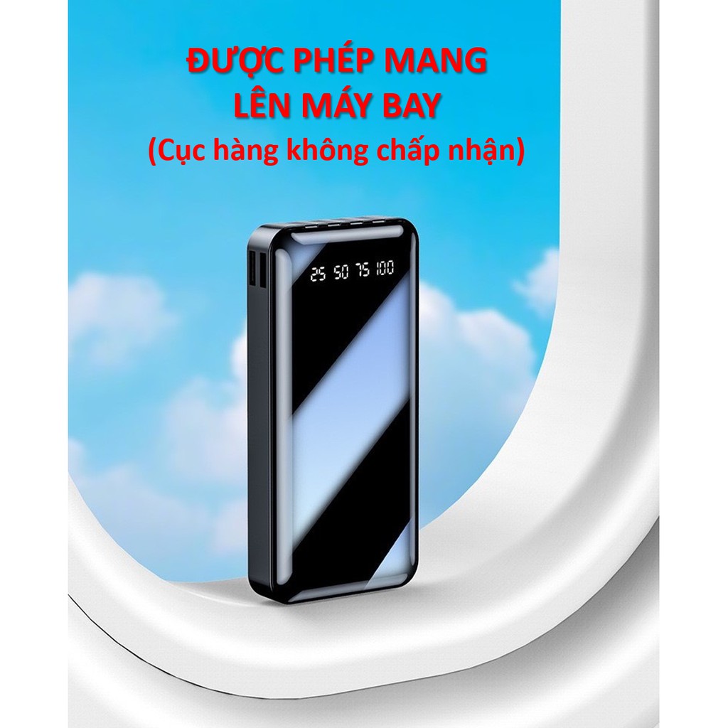 Sạc Dự Phòng 20000mAh Mặt Kính Tích Hợp 4 Cổng Sạc USB/Type C/Lightning/Micro USBLõi pin Lithium Polymer 20.000mAh mật độ cao