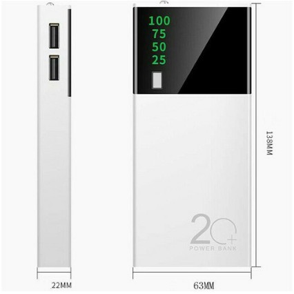 Giới thiệu Sạc dự phòng 20000 mAh 2 cổng USB ,Màu Trắng nhỏ gọn tiện lợi Tích Hợp Đèn Pin