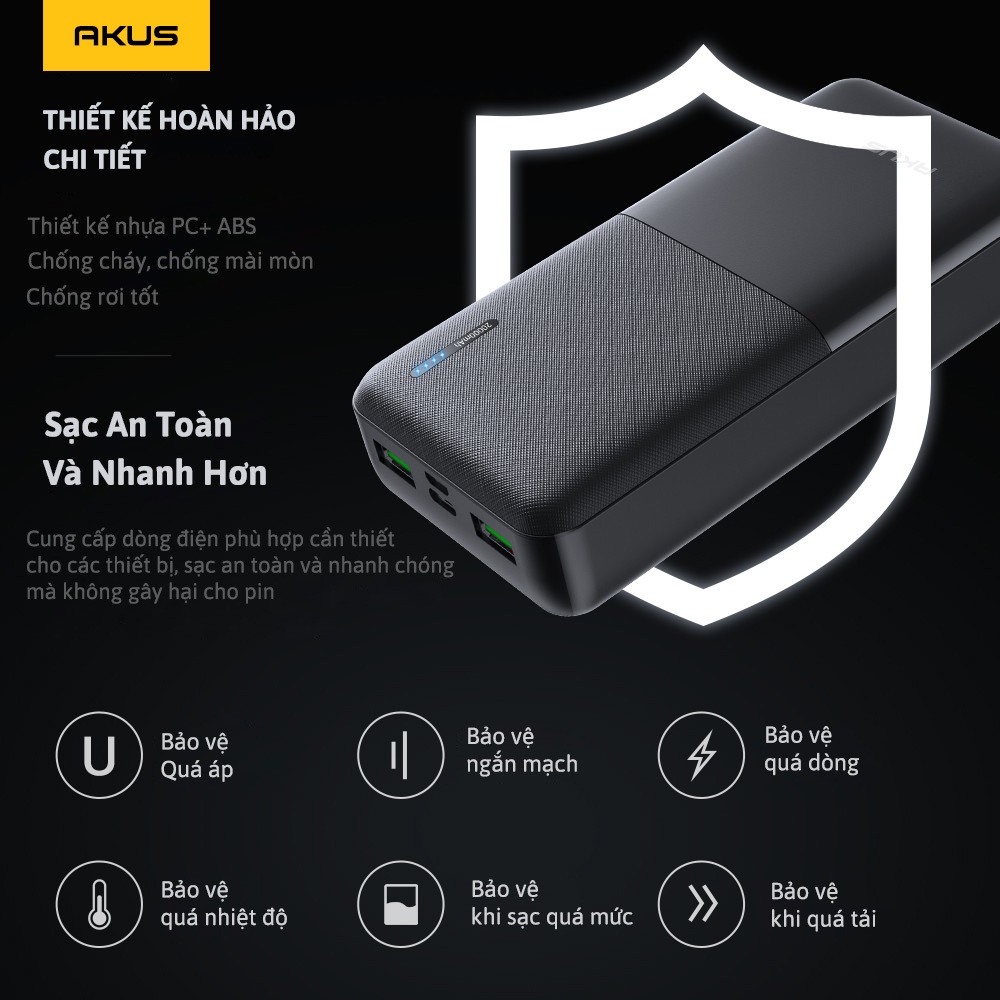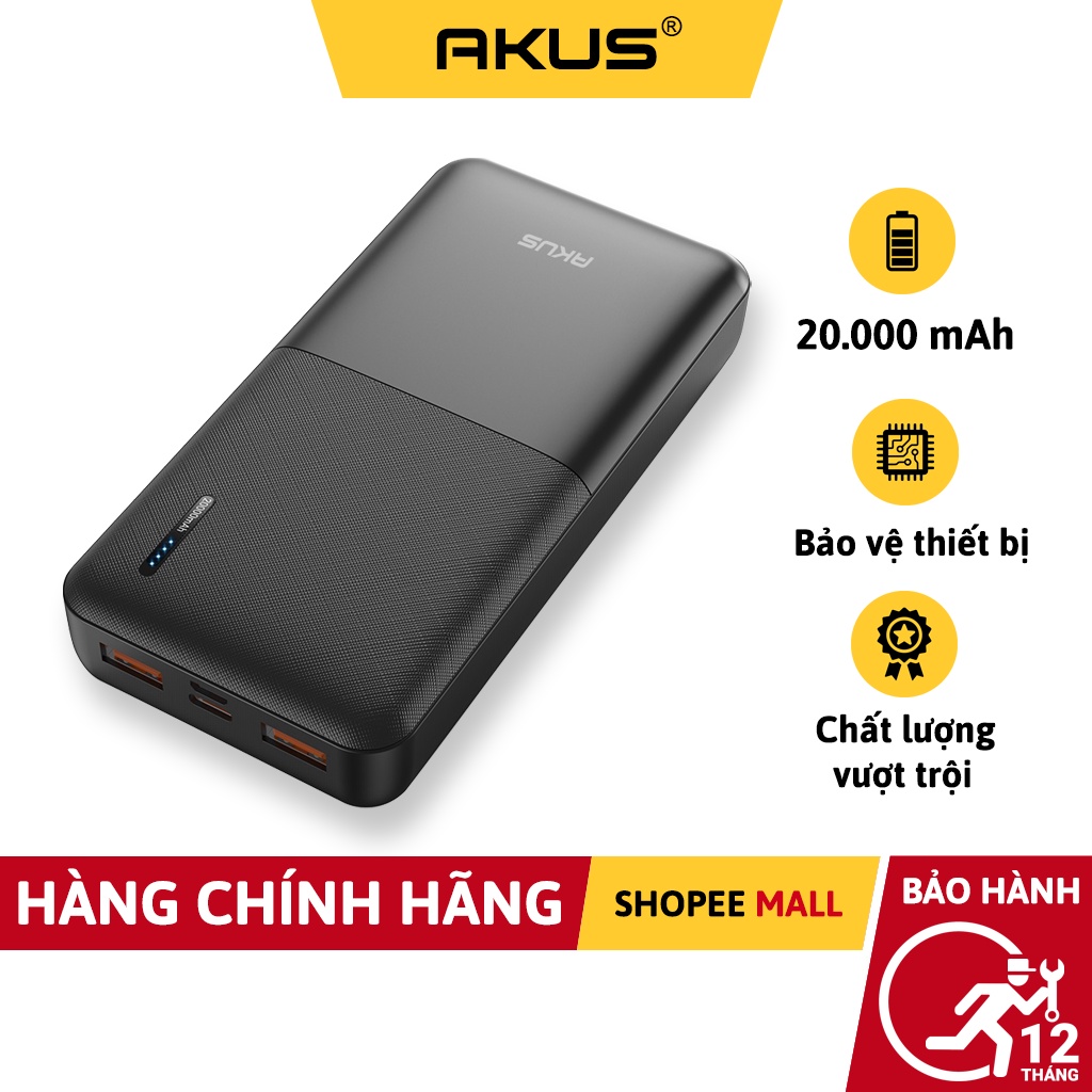 Sạc dự phòng 20000 mAh Akus C20 - Hàng chính hãng - Bảo hành 12 tháng
