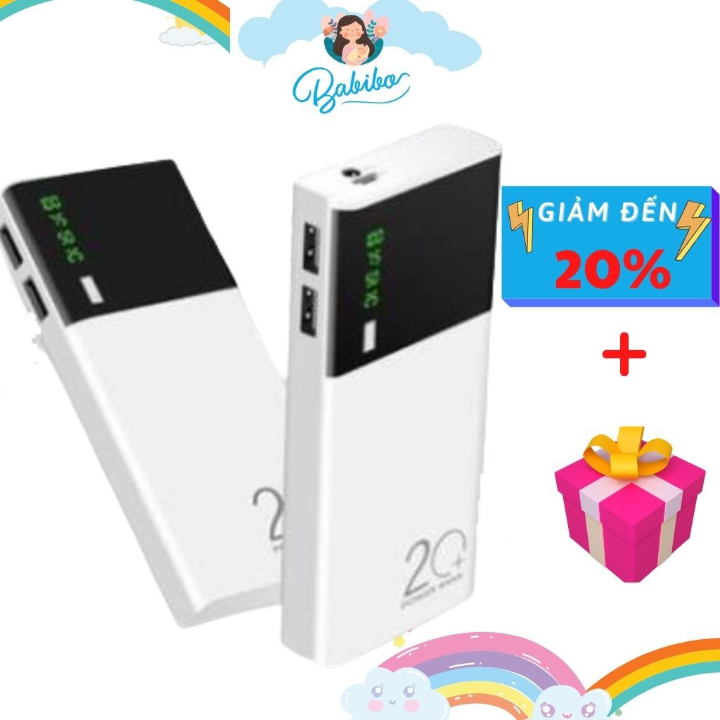 Sạc dự phòng 20000 MAH đi kèm dây sạc 3 đầu đa năng ,Pin màu trắng nhỏ gọn Tích Hợp Sạc Nhanh- phukienpt91