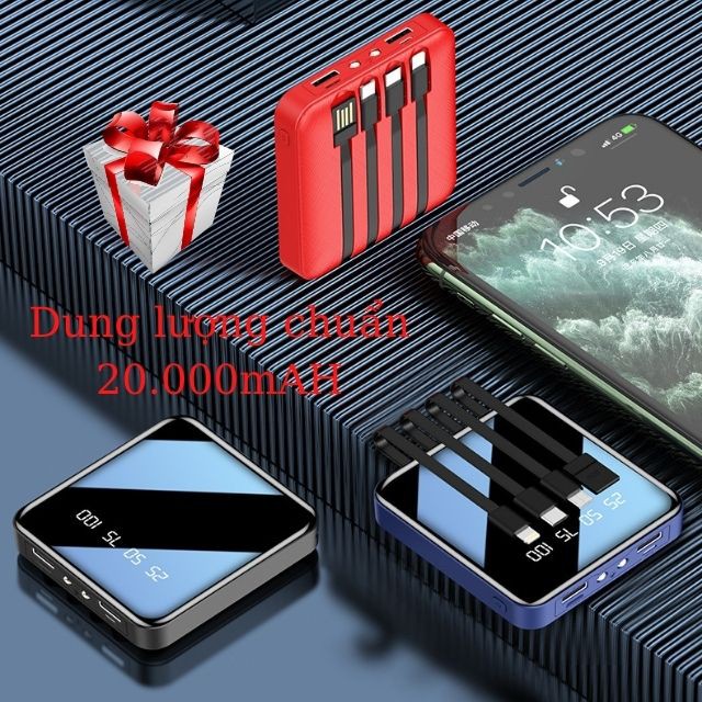 Điện Thoại & Phụ Kiện > Phụ kiện > Sạc dự phòng & Pin > Sạc dự phòng || Sạc Dự Phòng 20000mAh 10000mAh Pin Sạc Dự Phòng Có 4 Dây Sạc Dây Sạc Iphone Samsung Xaomi AndroidCòn hàng
