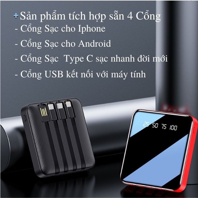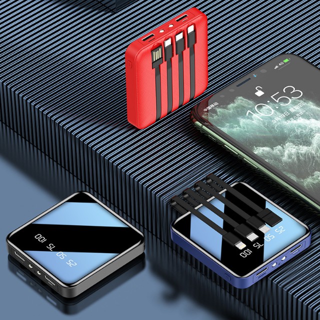 Sạc Dự Phòng 20000mAh 10000mAh Pin Sạc Dự Phòng Có 4 Dây Sạc Dây Sạc Iphone Samsung Xaomi Android