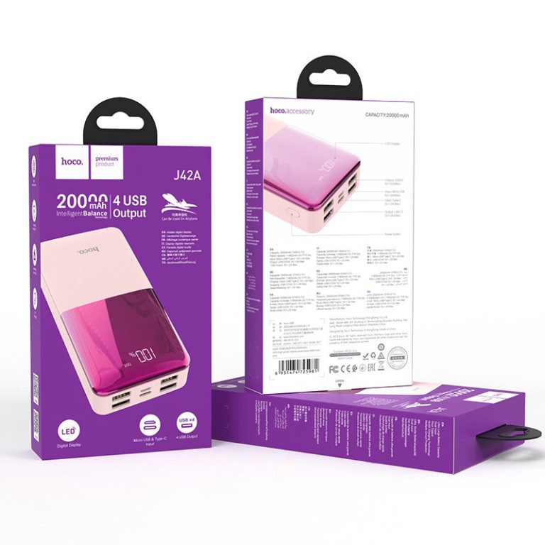 Giới thiệu Sạc dự phòng 20000mah 30000mah 4 cổng sạc hàng chính hãng Hoco J42a