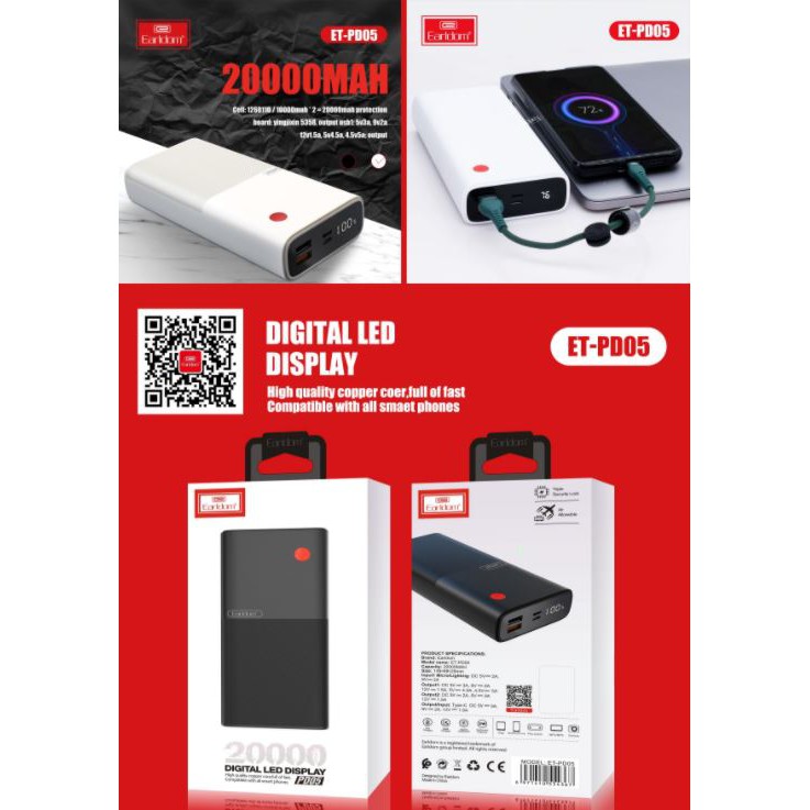 GIỚI THIỆU SẢN PHẨM:Sạc Dự Phòng Earldom 20.000 mAh PD – 05