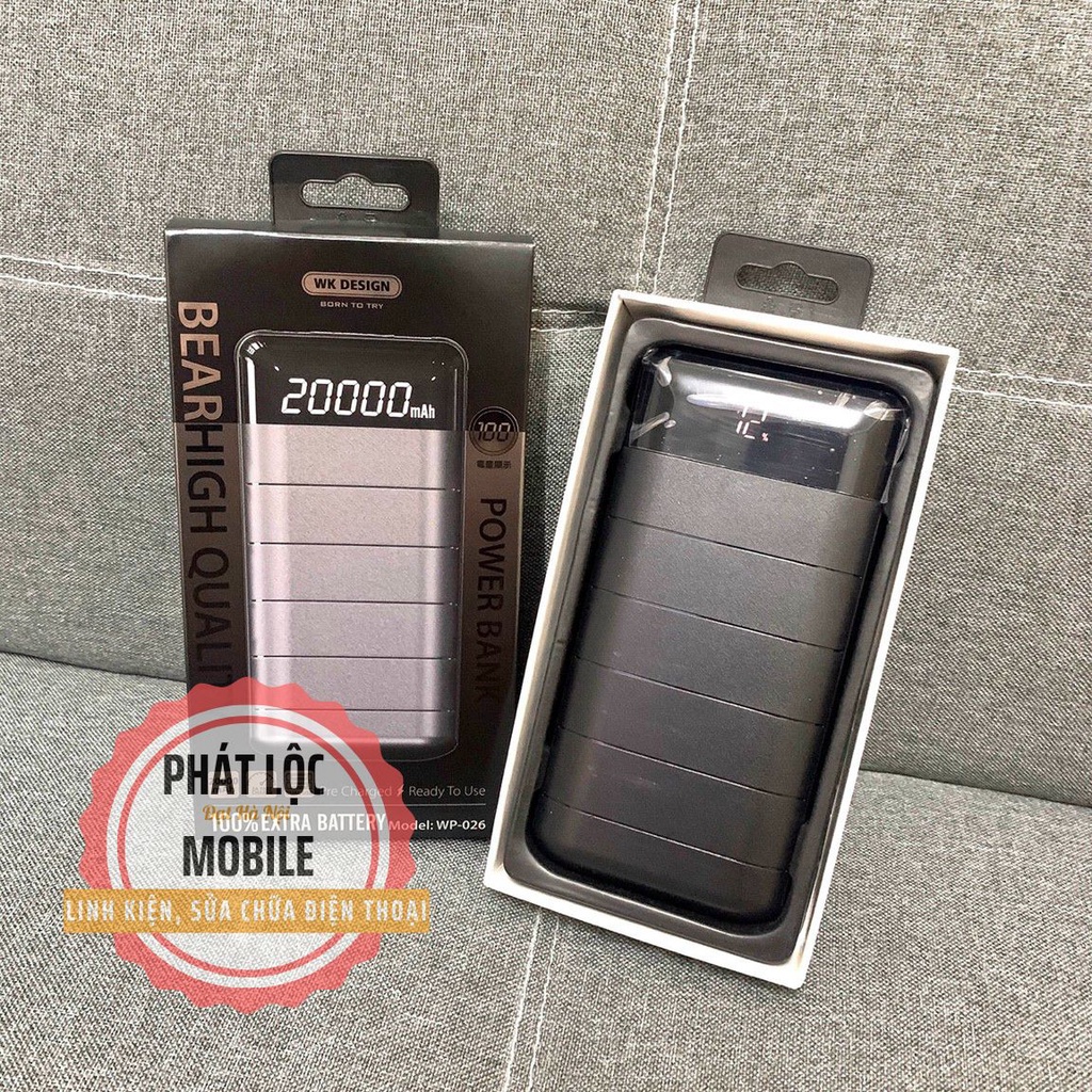 👉 Chiếc Pin dự phòng WK - WP026 20000Mah với dung lượng lên tới 20.000mAh chắc chắn sẽ đáp ứng tốt các nhu cầu của bạn. Không chỉ sạc được điện thoại nhiều lần mà bạn còn có thể sạc cùng lúc tới 2 thiết bị.