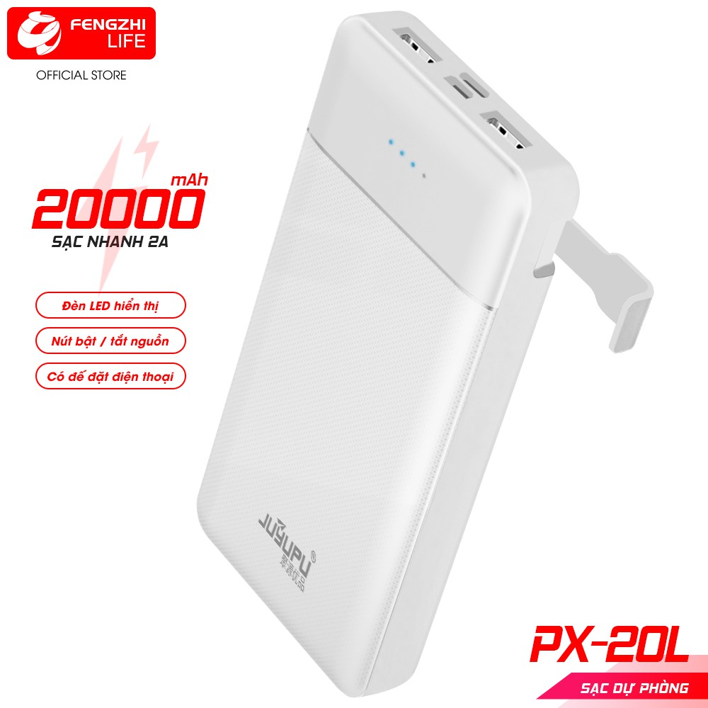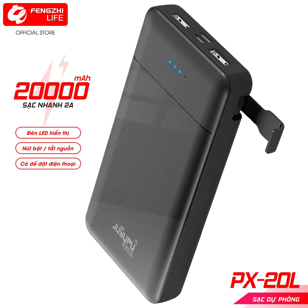 Điện Thoại & Phụ Kiện > Pin sạc dự phòng > 10000 - 20000mAh || Sạc dự phòng 20000mAh nhỏ gọn có đèn led cục sạc dự phòng có 2 cổng USB 2A BH 12 THÁNG FENGZHI PX-20LCòn hàng