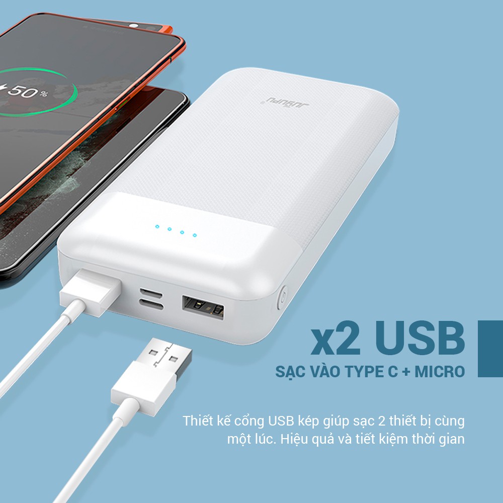 - Với dung lượng lên tới 20000mAh giúp sạc đầy hơn 4 lần cho iPhone XSmax và sạc xoay vòng lên tới 500 lần.