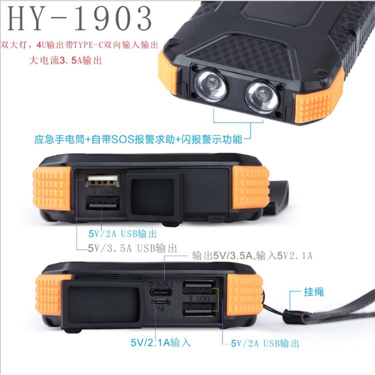 Giới thiệu Sạc dự phòng 20000mAh sử dụng năng lượng mặt trời 18w sạc nhanh 2 cổng USB có bảo hành