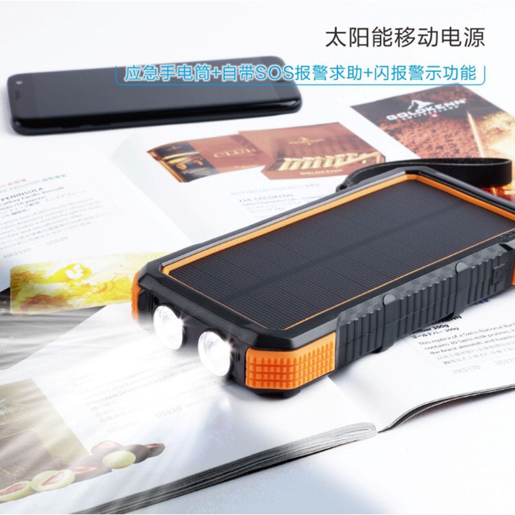 Sạc dự phòng năng lượng mặt trời 20000mAh với 2 cổng USB tích hợp đèn pinThiết kế nhỏ gọn với kẹp kim loại, bạn có thể tự do kẹp vào ba lô trong khi cắm trại
