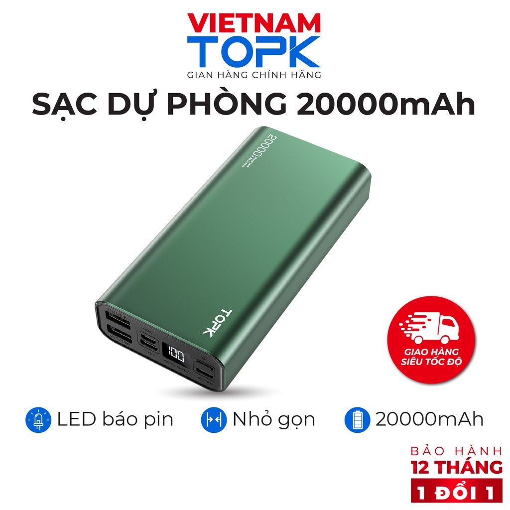 Sạc dự phòng 20000mAh TOPK I2006 Màn hình LED - 2 cổng ra - Hàng phân phối chính hãng - Bảo hành 12 tháng 1 đổi 1THỜI GIAN GIAO HÀNG SIÊU TỐC ĐỘ
