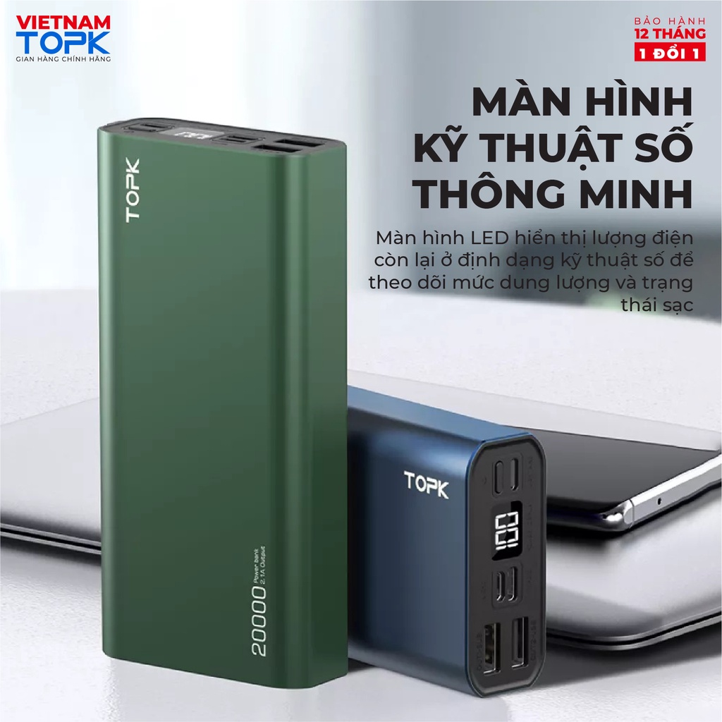 Giới thiệu Sạc dự phòng 20000mAh TOPK I2006 Màn hình LED - 2 cổng ra - Hàng phân phối chính hãng - Bảo hành 12 tháng 1 đổi 1